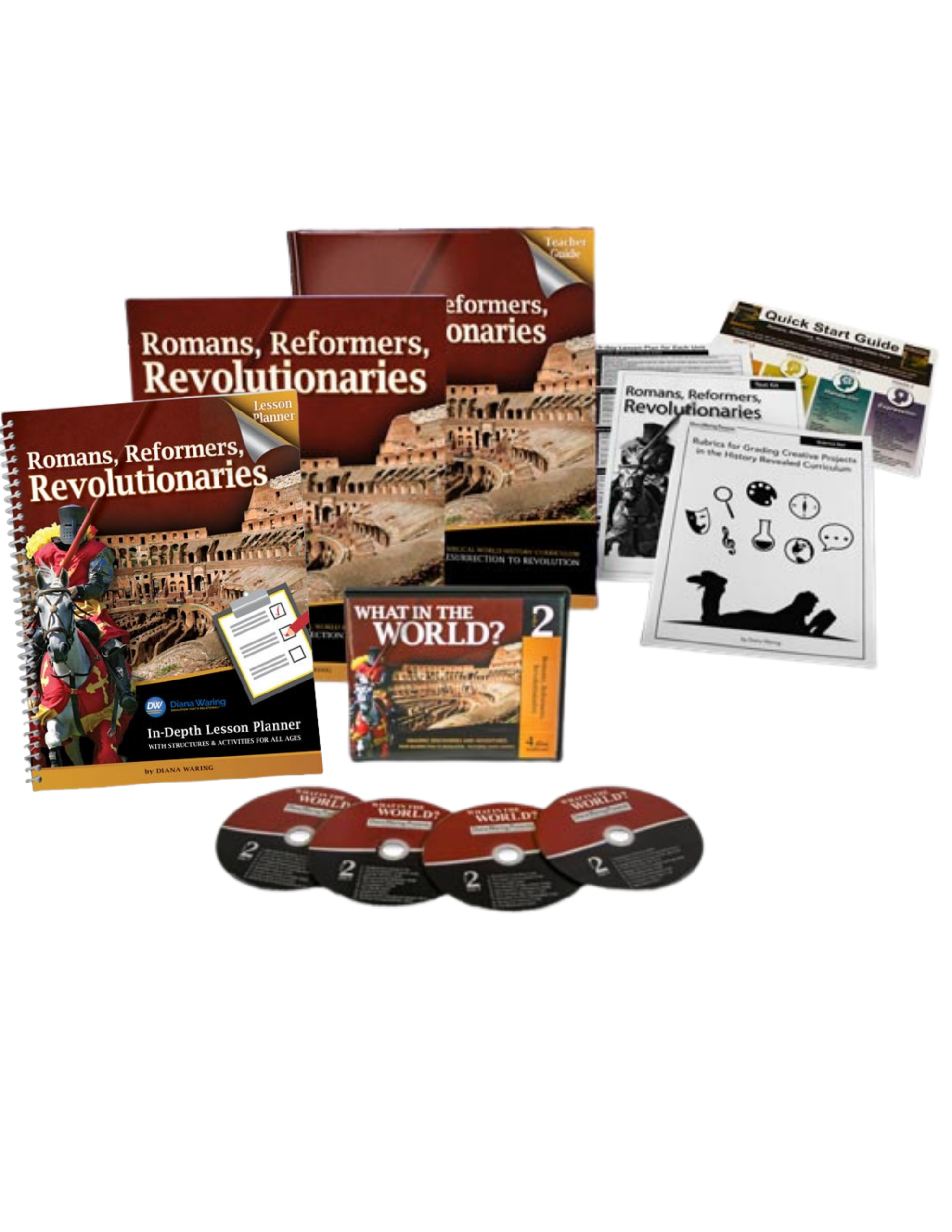 - The Romans, Reformers, Revolutionaries Essentials Pack includes: Teacher Guide, Student Manual, What in the World Volume 2 CD Set, Lesson Planner, Test Kit, Rubric Set, and Quick-Start Guide